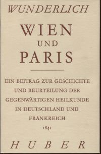 Wunderlich, Karl Reinhold August: Wien und Paris. ein Beitrag zur Geschichte und Beurteilung der gegenwärtigen Heilkunde in Deutschland und Frankreich. [Nachdruck der Ausgabe] Stuttgart 1841. Bern: Huber, 1974. 159 S., Plan, Leinen Schutzumschlag lericht angestaubt; sonst gut erhalten) (=Hubers Klassiker der Medizin und der Naturwissenschaften Bd. 13)