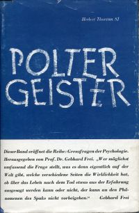 Thurston, Herbert: Poltergeister. [1. – 3. Aufl.] Luzern: Räber 1955. 8°. 288 S. Leinen (Schutzumschlag leicht berieben und mit Randläsuren; gut erhalten) (=Grenzfragen der Psychologie; 1)