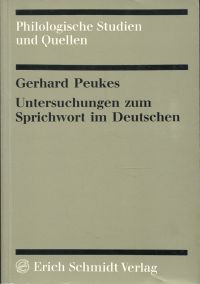 Peukes, Gerhard: Untersuchungen zum Sprichwort im Deutschen. Semantik, Syntax, Typen. Berlin: Erich Schmidt 1977. 8°. 183 S. broschiert (Einband mit leichten Gebrauchsspuren; gut erhalten) (=Philologische Studien und Quellen, Heft 86)