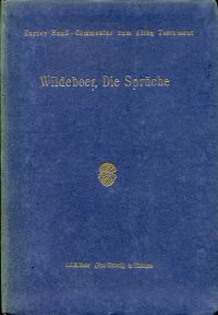Wildeboer, Gerrit: Die Sprüche. Freiburg i. Br.: Mohr 1897. Gr.-8°. XXIV, 95 S., Pappband (Einband leicht aufgeworfen; teilweise stockfleckig) (=Kurzer Hand-Commentar zum Alten Testament, 15)