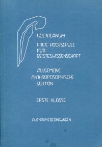 Goetheanum. Freie Hoschule für Geisteswissenschaft. Allgemeine Anthroposophische Sektion, Erste Klasse. Aufnahmebedingungen. Dornach Goetheanum 1986. 8°. 94 S., broschiert (gut erhalten)