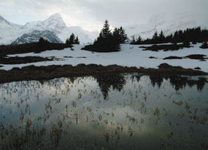 bildreich karten PK 14: lai digl mestgel II, alp flix. Querformat. 2003. (See, Berg, Alp, Reflexe) Mindestbestellmenge: 15 Karten (auch assortiert).