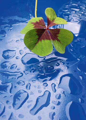 bildreich karten PK 1000: viel glueck!. Hochformat. (Glück, Glücksklee, Klee, Tisch, Regen, Tropfen) Mindestbestellmenge: 15 Karten (auch assortiert).
