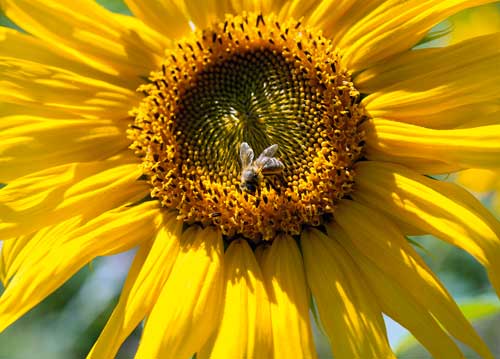 bildreich karten PK 1026: honiggelb. Querformat. (Biene, Sonnenblume, Hochsommer, Honig, Nektar, Blütenstaub) Mindestbestellmenge: 15 Karten (auch assortiert).