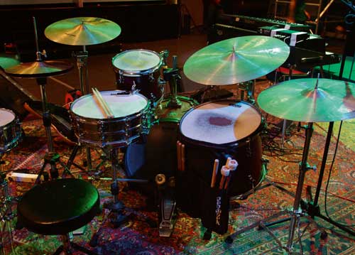 bildreich karten PK 1050: batteria verde. Querformat. (Schlagzeug, Konzert, Drums, Bühne) Mindestbestellmenge: 15 Karten (auch assortiert).