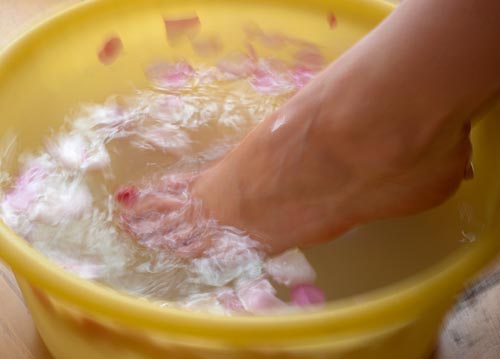 bildreich karten PK 1064: rosenwasserwirbelchen. Querformat. (Fussbad, Füsse, Nagellack, Wasserbecken) Mindestbestellmenge: 15 Karten (auch assortiert).