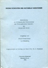 Forest-Streit, Ursula: Soziale Schichten und kulturelle Variationen. Clausthal-Zellerfeld: Bönecke-Druck 1976. 8°. 119 S., broschiert (Einband mit leichten Gebrauchsspuren; gut erhalten) (Dissertation Zürich 1976)