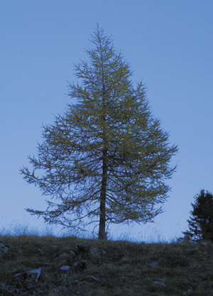 bildreich karten PK 205: abendlärche. Hochformat. 2005. (Lärche, Abend, Alp) Mindestbestellmenge: 15 Karten (auch assortiert).