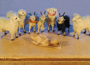 bildreich karten PK 218: wundersames. Querformat. 2006. (Krippe, Schaf, Ziege, Jesus, Christkind) Mindestbestellmenge: 15 Karten (auch assortiert).