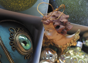 bildreich karten PK 285: wunderfitzig. Querformat. 2007. (Glas, Kugeln, Kristall, Weihnachtsschmuck, Engel)