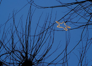 bildreich karten PK 367: sternennacht. Querformat. (Stern, Baum, Weihnachtsbeleuchtung) Mindestbestellmenge: 15 Karten (auch assortiert).