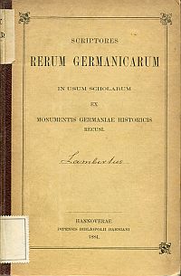 Lambertus: Lamberti Hersfeldensis annales. Ed. 2. Hannoverae: Hahn 1874. 8°. XXVI, 267 S., Halbleinen (Bibliotheksexemplar; Bibliotheksvermerke; Stempel auf Titelblatt; Einband mit leichten Gebrauchsspuren; Papier altersbedingt leicht gebräunt; Anstreichungen) (=Monumenta Germaniae Historica; [Scriptores]; Scriptores rerum Germanicarum in usum scholarum separatim editi, [38])