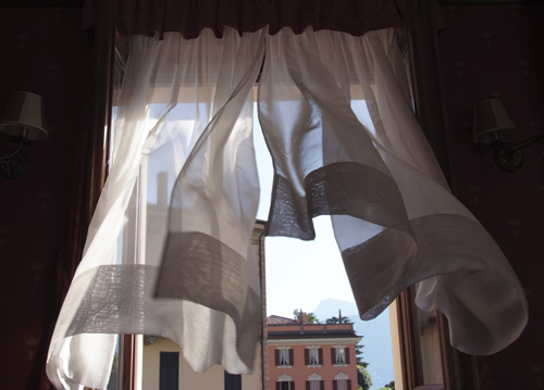 bildreich karten PK 624: albergo al lago. Querformat. (Fenster, Vorhang, Wind, Brise, Windstoss, Süden, Haus, Fassade, Hotel, Zimmer, Schlafzimmer, Hotelzimmer) Mindestbestellmenge: 15 Karten (auch assortiert).