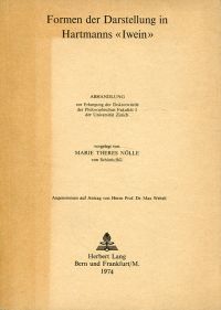 Nölle, Maria Theres: Formen der Darstellung in Hartmanns Iwein. Bern/Frankfurt: Lang, 1974. 8°. 76 S. Broschiert (Einband teilweise abgedunkelt; sonst gut erhalten) (=Europäische Hochschulschriften : Reihe 1, Deutsche Sprache und Literatur ; Bd. 89)