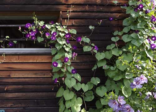 bildreich karten PK 812: puschis kuechenfenster. Querformat. (Winde, Fassade, Holz, Küchenfenster, Fenster, Fenstersims, Garten, Puschi)