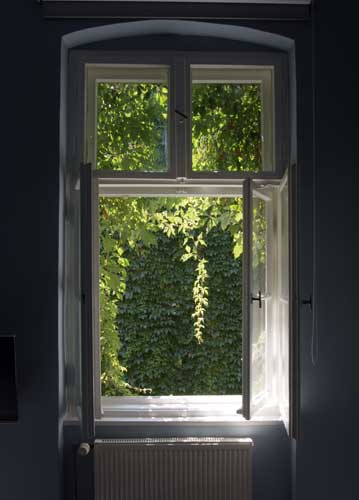 bildreich karten PK 831: gruener duft. Hochformat. (Fenster, Zimmer, Reben, Garten, Licht, Luft)