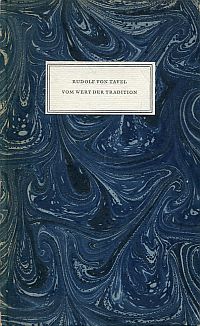 Tavel, Rudolf von: Vom Wert der Tradition. Vorwort von Hugo Marti. Bern: Francke 1963. 8°. 29 S., Pappband (gut erhalten) (=Francke-Druck, 1)