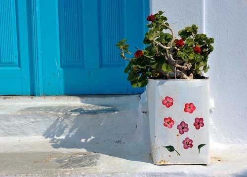 bildreich karten PK 912: blumentopf. Querformat. (Blumentopf, Kanister, bemalt, Türe, Schwelle, Griechenland)