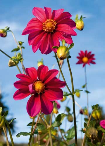 bildreich karten PK 933: hochsommer. Hochformat. (Dahlien, Garten, Bauerngarten, Himmel)