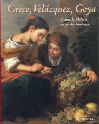 Spielmann, Heinz (Hrsg.): Greco, Velázquez, Goya. Spanische Malerei aus deutschen Sammlungen. München: Prestel 2005. 4°. 255 S., zahlreiche Farbabbildungen, gebunden (gut erhalten) (=Publikationen des Bucerius-Kunst-Forums) Erstmals wird mit diesem üppig bebilderten Band eine Gesamtdarstellung aus bedeutenden Beständen deutscher Museen und Sammlungen präsentiert. In rund 60 Gemälden werden die wichtigsten Schulen und ihre Vertreter vorgestellt: vom späten Mittelalter über die Renaissance, den Manierismus und Barock bis zur Zeit um 1800. Vertreten sind u. a. Werke von El Greco, Zurbarán, Velázquez, Murillo, Ribera, Meléndez und Goya.
