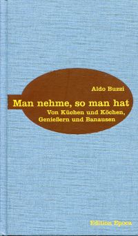 Buzzi, Aldo: Man nehme, so man hat. von Küchen und Köchen, Genießern und Banausen. 1. Aufl. Zürich: Ed. Epoca 2005. 8°. 159 S., Illustrationen, Leinen (gut erhalten)