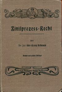 Schwarz, Otto Georg: Zivilprozeßrecht, Konkursrecht. Ein Hilfsbuch f. junge Juristen. 9. u. 10., völlig umgearb. Aufl. Berlin, Heymann, 1913. 8°. XI, 318 S., Leinen (Besitzervermerk auf Vortitel; altersgemäss gut erhalten) Text in Fraktur.