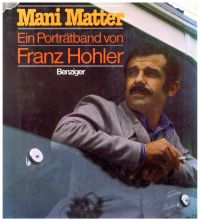 Hohler, Franz: Mani Matter. Ein Porträtband. Zürich, Köln: Benziger 1977. quer- Lex.-8°. 93 S., zahlreiche sw-Abbildungen, Notenberispiele, Bibliographie, Diskographie, Pappband (Schutzumschlag leicht berieben und mit kleiner Fehlstelle; Einband teilweise abgeblasst; sonst gut erhalten)