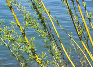 bildreich karten PK 259: uferlicht. Querformat. 2007. (See, Ufer, Weide, Weidenäste, Blätter, Uferweg)