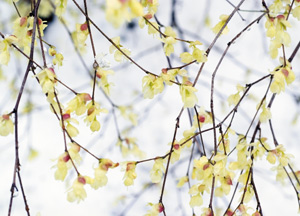 bildreich karten PK 273: zartes gelb II. Querformat. 2007. (Schnee, Blüte, Blütenzweige, Äste) Mindestbestellmenge: 15 Karten (auch assortiert).