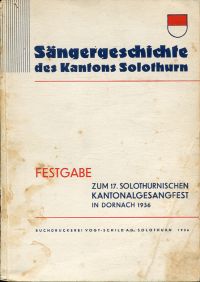 Dietschi, Hugo: Sängergeschichte des Kantons Solothurn. Verf. im Auftr. d. Solothurn. Kantonalgesangvereins ; Festgabe zum 17. Solothurn. Kantonalgesangfest in Dornach 1936. Solothurn, Vogt-Schild, 1936. 8°. VIII, 208 S., sw-Abbildungen, Broschiert (Einband befleckt und abgegriffen; stockfleckig)
