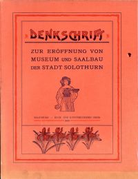 Denkschrift zur Eröffnung von Museum und Saalbau der Stadt Solothurn. Solothurn: Buch- und Kunstdruckerei Union 1902. Lex.-8°. 252 S., zahlreiche sw-Abbildungen, teilweise auf Tafeln, broschiert (Einband mit Gebrauchsspuren und kleinen Einrissen; sonst altersgemäss gut erhalten)
