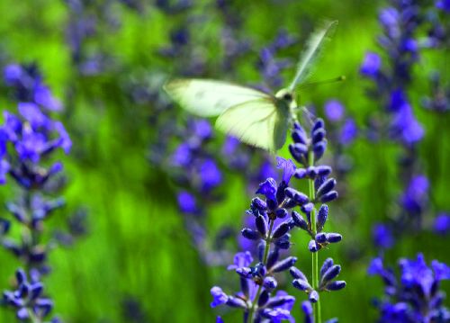 bildreich karten PK 512: zarter falter. Querformat. (Schmetterling, Falter, Lavendel, Flügel) Mindestbestellmenge: 15 Karten (auch assortiert).