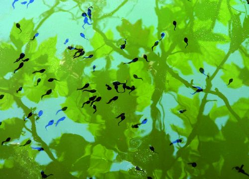 bildreich karten PK 521: girini felici. Querformat. (Kaulquappen, Spiegelung, Schatten) Mindestbestellmenge: 15 Karten (auch assortiert).