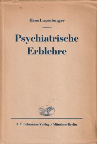 Luxenburger, Hans: Psychiatrische Erblehre. München: Lehmann 1938. Gr.-8°. 140 S., Leinen (Besitzervermerk auf Vorsatz; Schutzumschlag mit Randläsuren; minimal befleckt; (=Psychiatrische Erblehre und Erbpflege; Teil 1) Luxenburger gehörte während der Weimarer Republik und zur Zeit des Nationalsozialismus zu den führenden psychiatrischen Erbforschern.