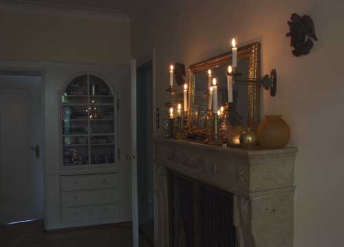 bildreich karten PK 563: heiligberger weihnacht II. Querformat. (Kerzen, Cheminée, Kamin, Kerzenständer, Wohnzimmer, Heiligberg)
