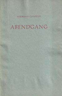 Claudius, Hermann: Abendgang. München: Herbert Post Presse 1966?. 8°. nicht pagniert (26 S.), Geheftet (leicht wasserwellig ohne Textverlust; Ex Libris auf Innendeckel)