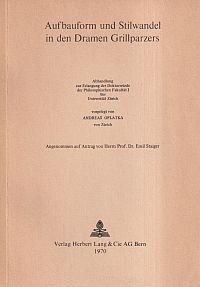 Oplatka, Andreas: Aufbauform und Stilwandel in den Dramen Grillparzers. Bern, Lang, 1970. 8°. 104 S. Broschiert (Besitzervermerk auf Vorsatz; Einband mit leichten Gebrauchsspuren; gut erhalten) (=Dissertation Zürich 1970)