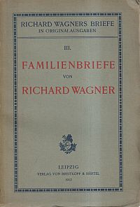 Wagner, Richard: Familienbriefe von Richard Wagner, 1832-1874. 6.-10. Tsd. Leipzig: Breitkopf & Härtel 1907 (1912). Gr.-8°. VIII, 304 S., Porträts auf Tafeln, Broschiert Einband mit leichten Gebrauchsspuren; Papier altersbedingt leicht gebräunt; altersgemäss gut erhalten) (=Richard Wagners Briefe in Originalausgaben, Folge 1, Bd. 3).