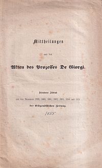 Mittheilungen aus den Akten des Prozesses De Giorgi. (Umschlag)