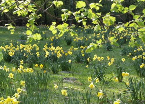 bildreich karten PK 716: fruehlingswiese. Querformat. (Ostern, Osterglocken, Narzissen, Wiese) Mindestbestellmenge: 15 Karten (auch assortiert).