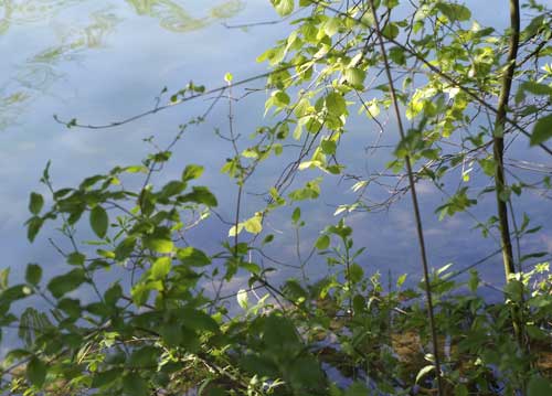 bildreich karten PK 718: leichter fruehlingstag. Querformat. (Ufer, Blätter, Spiegelung, Blätter) Mindestbestellmenge: 15 Karten (auch assortiert).