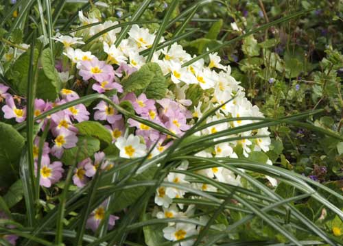 bildreich karten PK 730: primelbueschel. Querformat. (Primel, Primula, Wiese, Ostern, Gras)