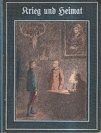 Henningsen, Nicolaus: Krieg und Heimat. Fünf Erzählungen aus dem deutschen Kriege. Köln: H. Schaffstein 1916. 8°. 134 S. 3 farb. Taf. Leinen mit mehrfarbiger Einbandvignette Einband mit leichten Gebrauchsspuren; Kopfschnitt leicht stockfleckig; sonst altersgemäss gut erhalten) (=Schaffsteins Volksbücher, Bd. 95) Text in Fraktur.