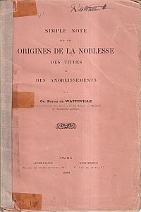 ![]() Watteville, Simple note sur les Origines de la Noblesse des titres et des Anobli (Umschlag) |