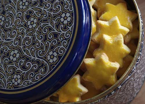 bildreich karten PK 781: ahnas guetzlibuechs. Querformat. (Guetzli, Kekse, Mailänderli, Dose, Keksdose, Sterne, Küche, Backen, Gebäck) Mindestbestellmenge: 15 Karten (auch assortiert).