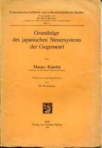 Kambe, Masao: Grundzüge des japanischen Steuersystems der Gegenwart. Jena: G. Fischer 1926. Gr.-8°. X, 90 S., broschiert (leicht angebräunt; leichte Randläsuren; einzelne Seiten lose; altersgemäss gut erhalten) (=Finanzwissenschaftliche und volkswirtschaftliche Studien, Heft 5).