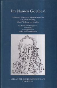 Hänsel-Hohenhausen, Markus von (Hrsg.); Ahrlé, Ferry (Ill.): Im Namen Goethes! Erfundenes, Erinnertes und Grundsätzliches zum 250. Geburtstag Johann Wolfgang von Goethes. 1. Aufl. Frankfurt/Main: Goethe-Gesellschaft 1999. 8°. 341 S., Illustrationen, Pappband (gut erhalten)
