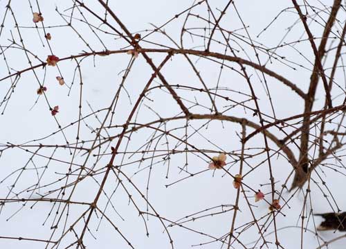 bildreich karten PK 881: farbtupfer. Querformat. (Schnee, Äste, Zweige, Beeren, Strauch) Mindestbestellmenge: 15 Karten (auch assortiert).