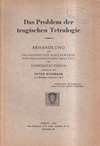 Wiesmann, Peter: Das Problem der tragischen Tetralogie. Zürich: Leemann 1929. 8°. 63 S. Broschiert (Bibliotheksexemplar; Bibliotheksvermerke; Papier altersbedingt leicht gebräunt; altersgemäss gut erhalten)