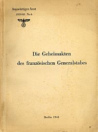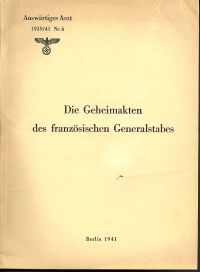 Die Geheimakten des französischen Generalstabes. Berlin: Deutscher Verlag 1941. 393 S., Broschiert (eine Ecke leicht bestossen; Papier altersbedingt leicht gebräunt; altersgemäss gut erhalten) (=Auswärtiges Amt, 6)